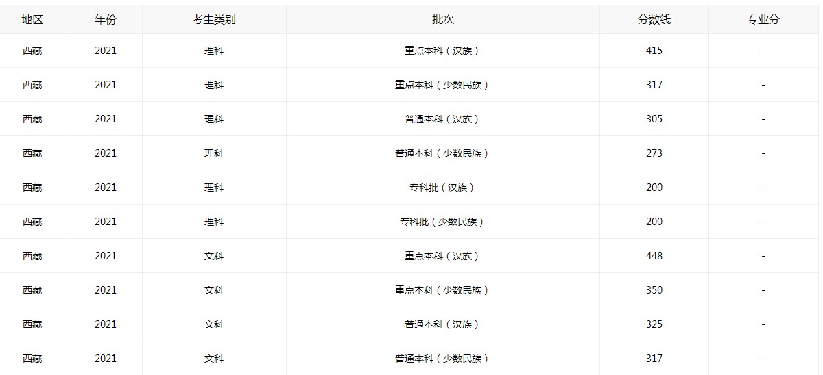 ★ 西藏高考分数线